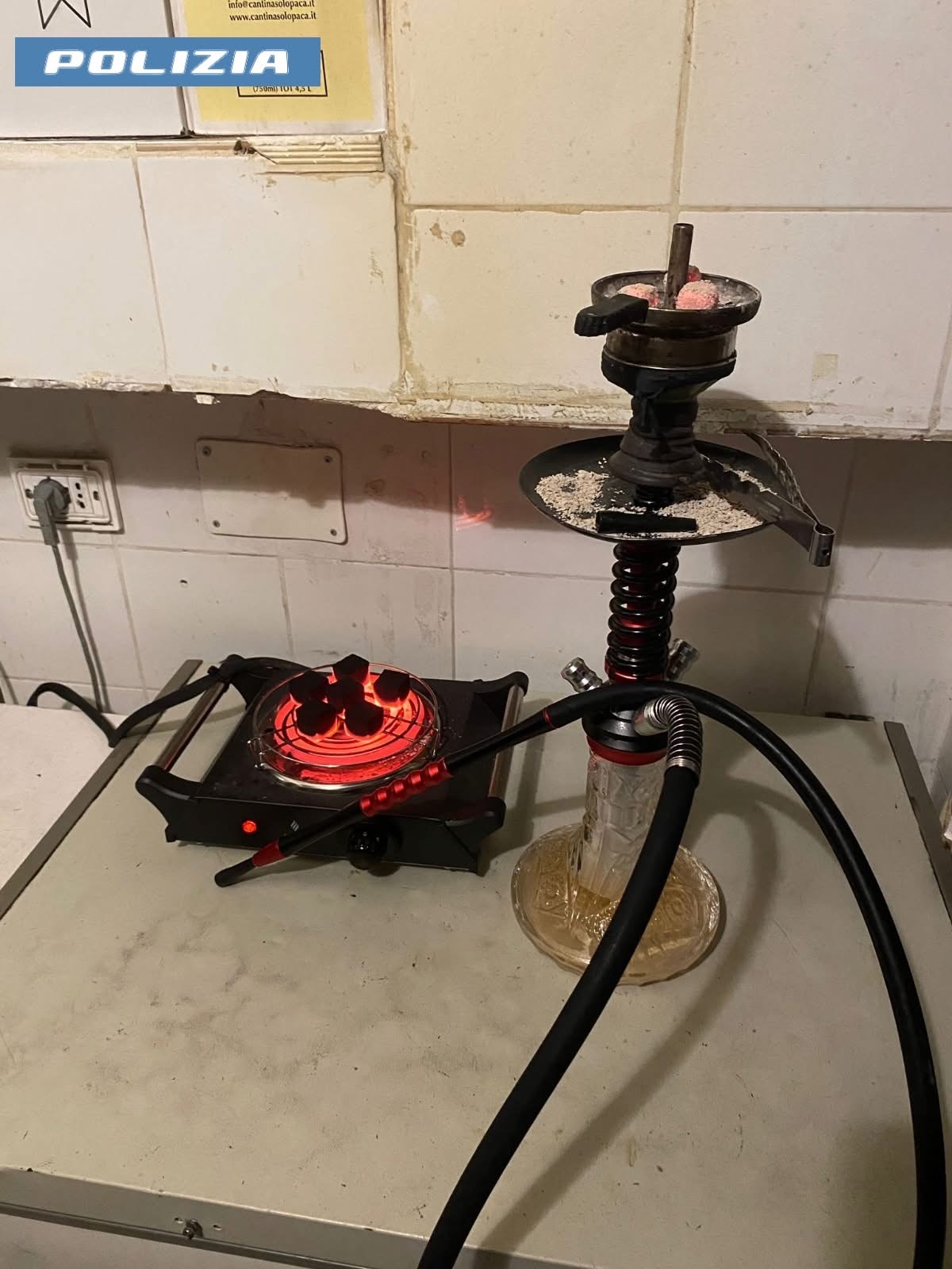Sullo senario di un’attività palesemente abusiva, gli ulteriori accertamenti hanno lasciato emergere carenti ed inadeguate condizioni sotto il profilo strutturale ed igienico-sanitario, delineando un quadro complessivo di criticità potenzialmente pericolose per l’incolumità degli avventori.In diversi punti del locale, infatti, è stata riscontrata la presenza di narghilè in uso, con carboni ardenti, alcuni dei quali venivano scaldati tramite un fornello in funzione all’interno di un ambiente retrostante, in prossimità di numerose prese elettriche, con evidenti profili di rischio.