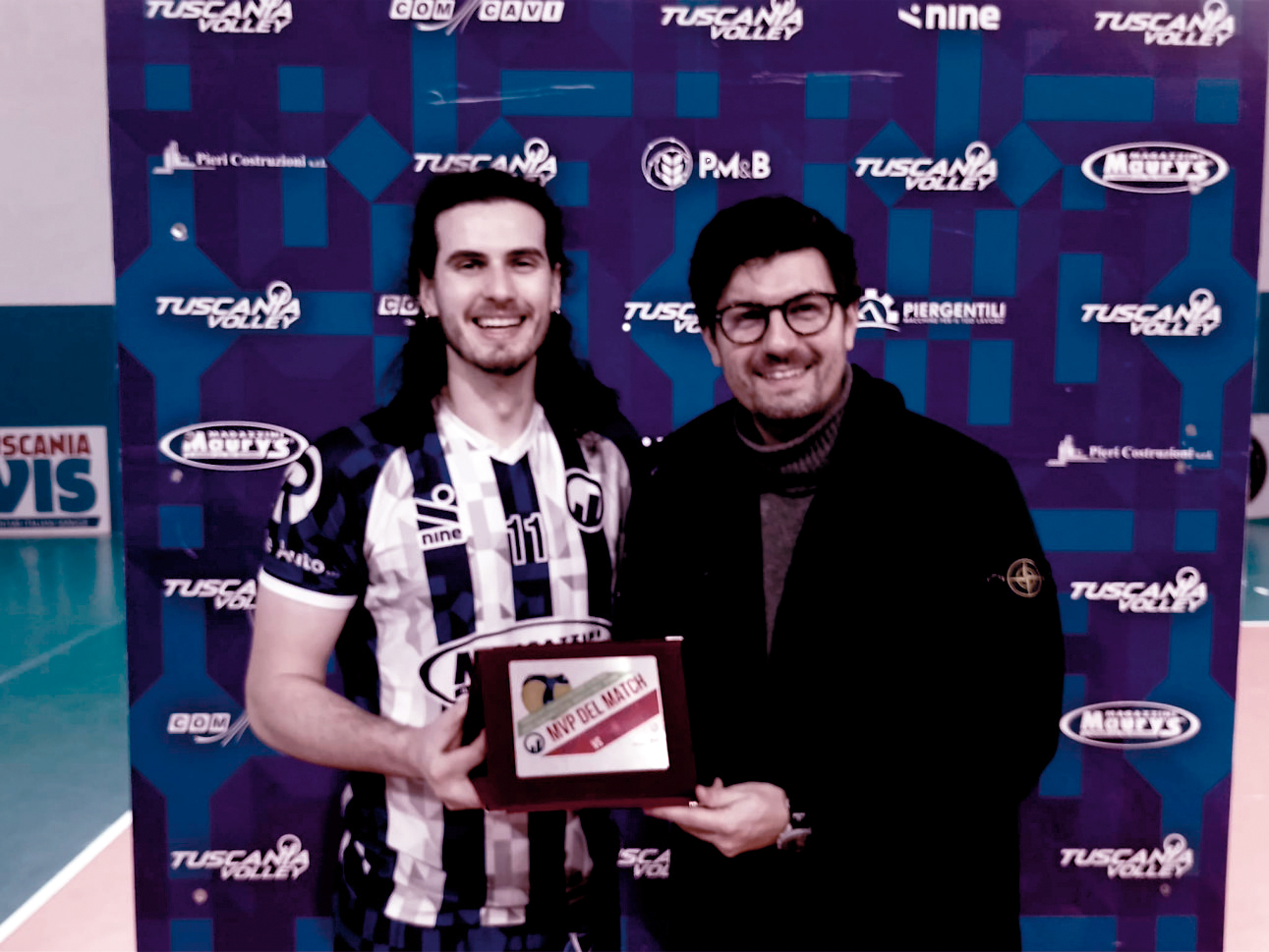 MVP del match: Federico Marrazzo premiato da Marco Piozzi della Mediel.