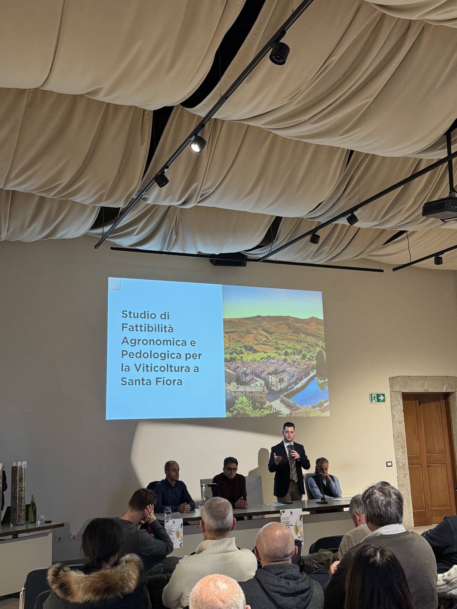 SANTA FIORA – Il Comune di Santa Fiora, nel corso di un incontro che si è svolto nel Palazzo comunale, ha presentato ai cittadini e agli imprenditori i risultati di uno studio sulle potenzialità di sviluppo di una viticoltura di alta quota nel territorio comunale. Parliamo di terreni tra i 600 e gli 800 metri sopra il livello del mare. Lo studio è stato commissionato dall’amministrazione comunale alla società francese Vino Terra Evolution di Saint-Émilion, che lo ha realizzato in collaborazione con lo Studio Agronomico Bagnulo e lo studio associato FLOEMA.