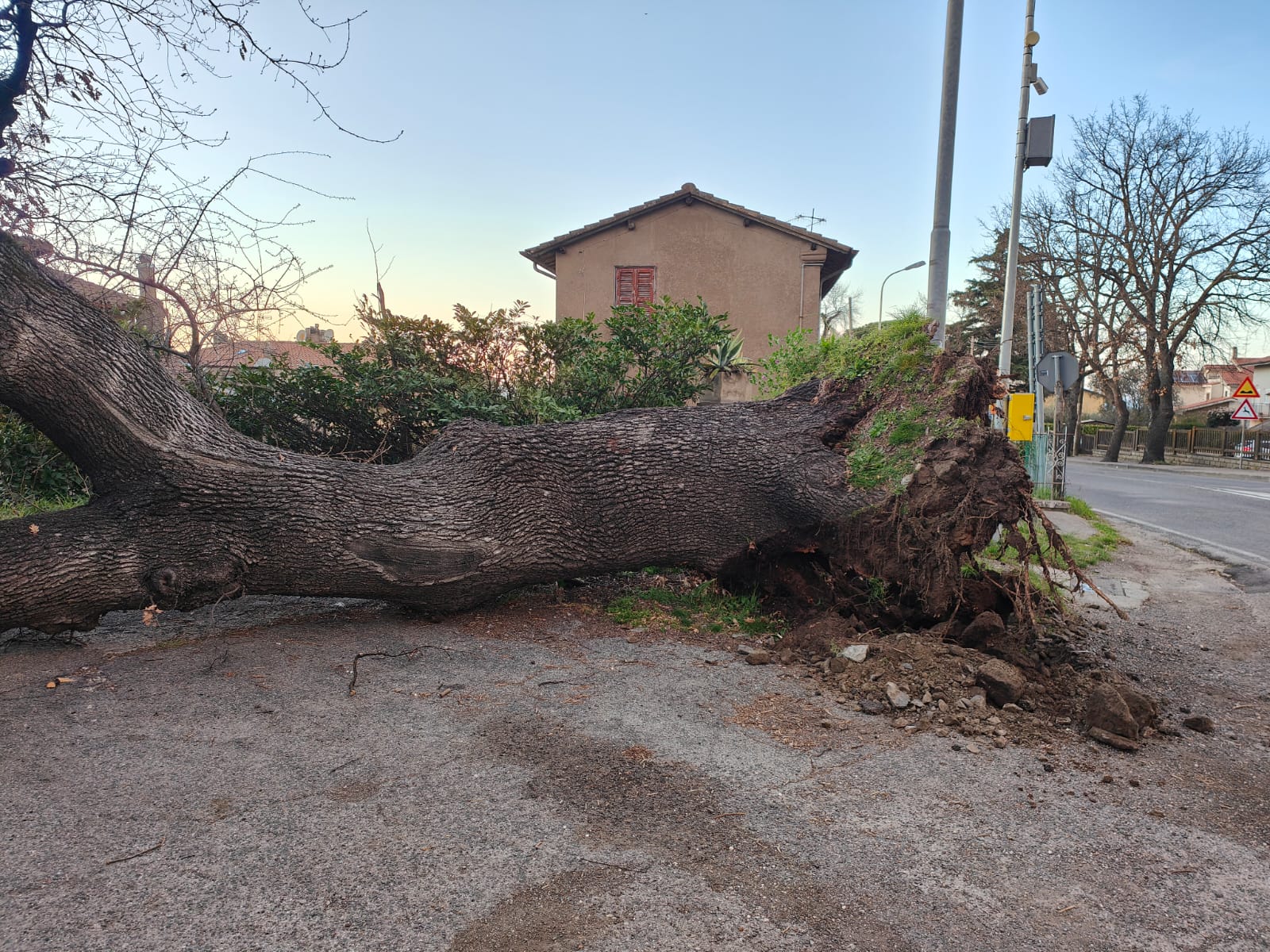VITORCHIANO – Paura ieri pomeriggio quando la grande quercia situata all’incrocio di località Pallone tra Via della Stazione e Via Ortana.