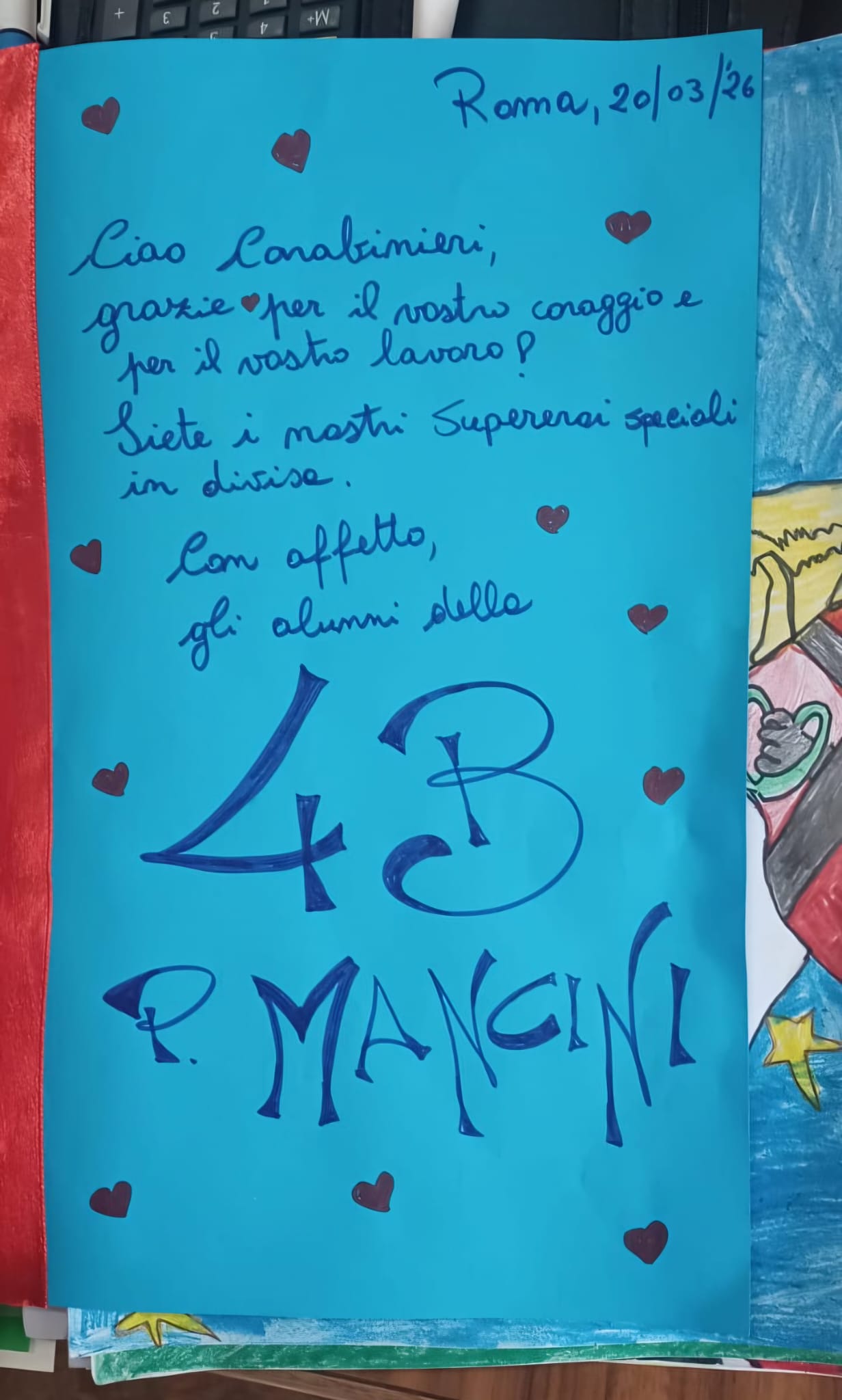 ​Gli alunni della classe 4ª B dell’istituto hanno infatti voluto salutare l’arrivo dell’Arma preparando diversi disegni e messaggi di ringraziamento, lasciati bene in vista nell’aula destinata alle operazioni elettorali. I lavori, realizzati nei giorni precedenti, hanno colpito i militari per la spontaneità e l’affetto dimostrato verso l’Istituzione.
