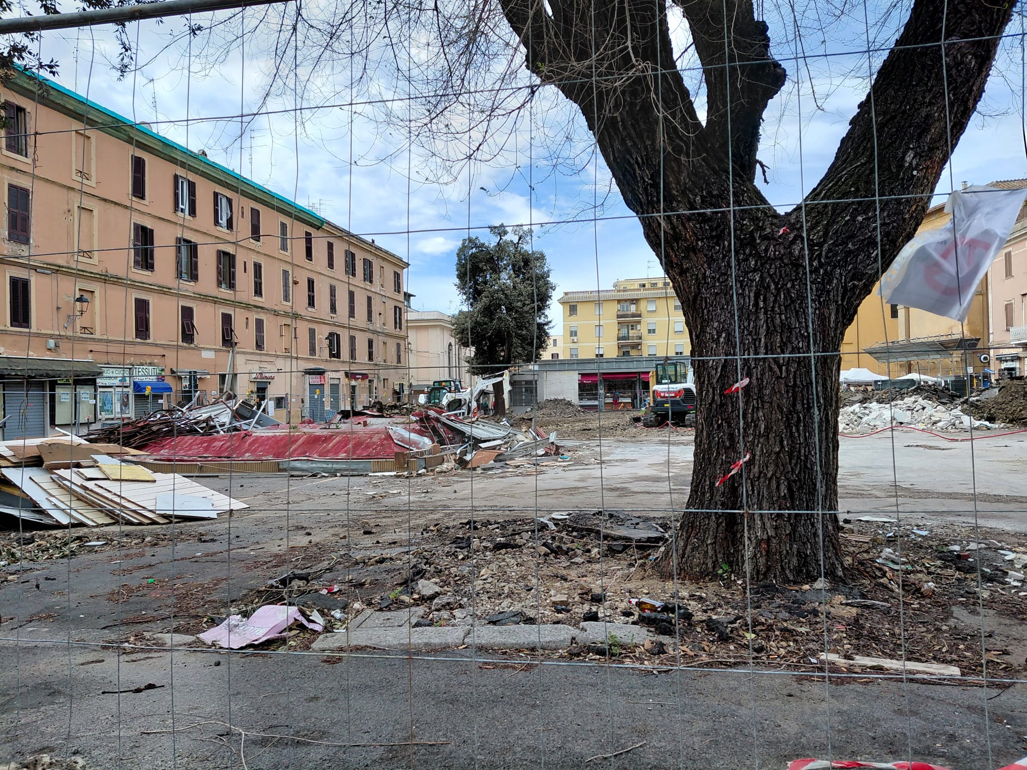 CIVITAVECCHIA – Chiuse le operazioni di abbattimento di 14 alberi su 16 nel progetto di riqualificazione di Piazza Regina Margherita finanziato da fondi europei PNRR per oltre tre milioni di euro, non si placa la rivolta di generazioni di civitavecchiesi indignati. Quasi “uno sgarro alla storia, uno strappo al cuore di tanti cittadini” è quello che si respira in città all’inizio della settimana successiva a quella più tempestosa, quella in cui l’abbattimento s’è concretizzato, nonostante decine e decine di manifestati incollati alla recinzione in segno di protesta. Oggi, come mostrano le immagini, ruspe in azioni: i 14 lecci decapitati si coniugano già all’imperfetto se non al passato remoto. Ma il Comitato Salviamo gli Alberi non ci sta e promette ancora battaglia. Come noto ha infatti dalla scorsa settimana lanciato un ricorso ufficiale. Sui social, tra l’altro, dal Comitato fanno sapere che è possibile effettuare una donazione per aiutare le spese legali: “Perché gli abbattimenti erano stati programmati già prima della perizia, perché le ceppaie di molti alberi si sono rivelate sane e curabili; perché sono stati abbattuti alberi con nidi attivi; perché non è stata tenuta in minima considerazione la volontà dei cittadini; perché sta accadendo in tutta Italia e non vogliamo che accada di nuovo”.