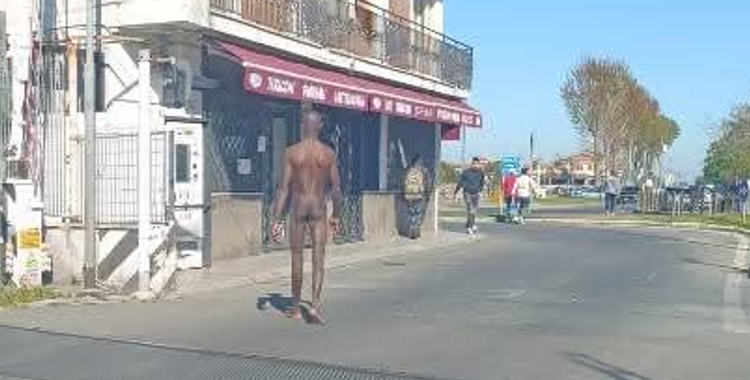 E’ successo oggi pomeriggio a Lavinio, nei pressi della stazione: un trentenne di colore, privo completamente di vestiti e a piedi nudi è stato immortalato dai molti passanti sconcertati mentre si faceva una passeggiata in assoluta tranquillità.