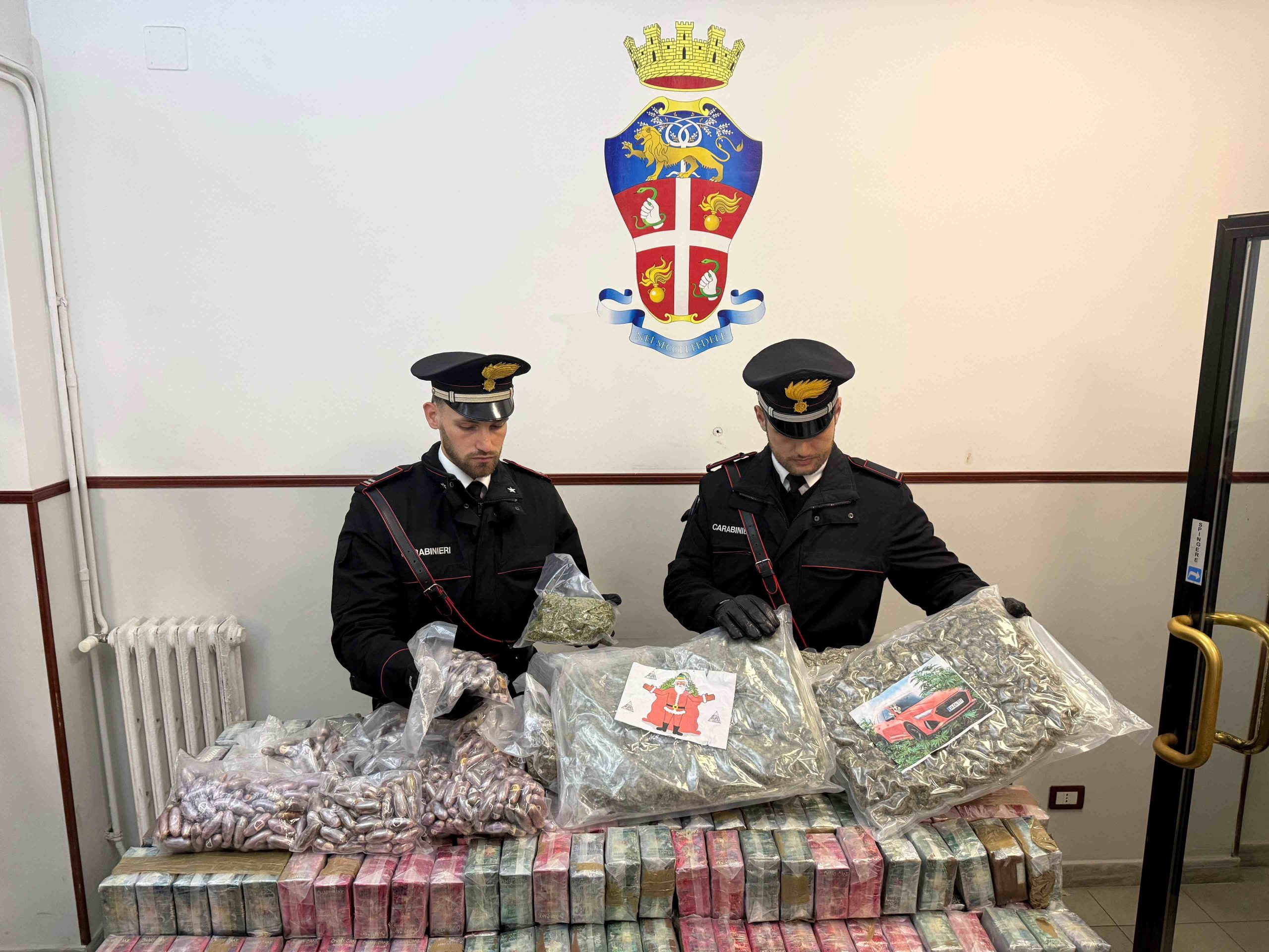 La perquisizione personale e veicolare ha permesso di rinvenire circa 20 chili di hashish, suddivisi in panetti, tenuti all’interno di due borse frigo. La sostanza, come accertato nell’immediatezza, gli era stata ceduta poco prima da un soggetto uscito da un’abitazione della stessa via.