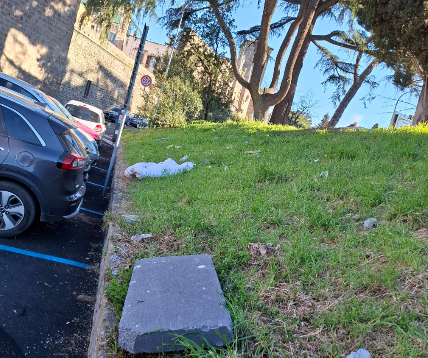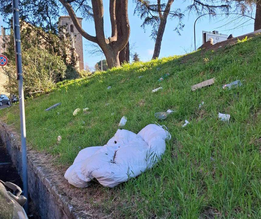 Le immagini diffuse online mostrano un contesto segnato da rifiuti abbandonati, materassi lasciati a terra e tracce evidenti di bivacchi. Tra i materiali segnalati figurerebbero siringhe, preservativi e altri rifiuti che, a detta dei cittadini, resterebbero nell’area per giorni senza interventi di pulizia. Un quadro che stride con gli interventi di riqualificazione recentemente avviati nella zona, compresa la sistemazione di nuove aree verdi che, secondo le segnalazioni, sarebbero già interessate dall’accumulo di immondizia.