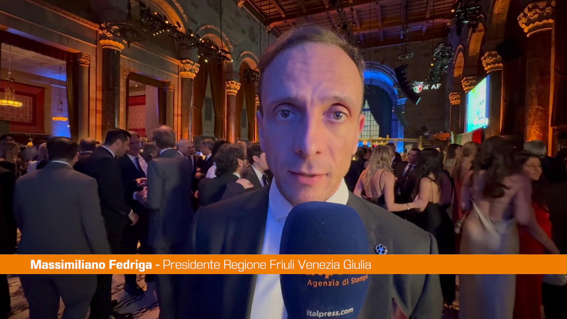 NEW YORK (STATI UNITI) (ITALPRESS) – “Niaf è riuscita in questi anni a rafforzare il legame fra Italia e Stati Uniti, anche in momenti nei quali non era scontato. È fondamentale il rapporto fra le diplomazie nazionali, ma quello tra i popoli crea quei legami che poi diventano indissolubili”. Lo ha detto Massimiliano Fedriga, presidente della Regione Friuli Venezia Giulia, a margine dell’annuale New York Gala della National Italian American Foundation (NIAF).