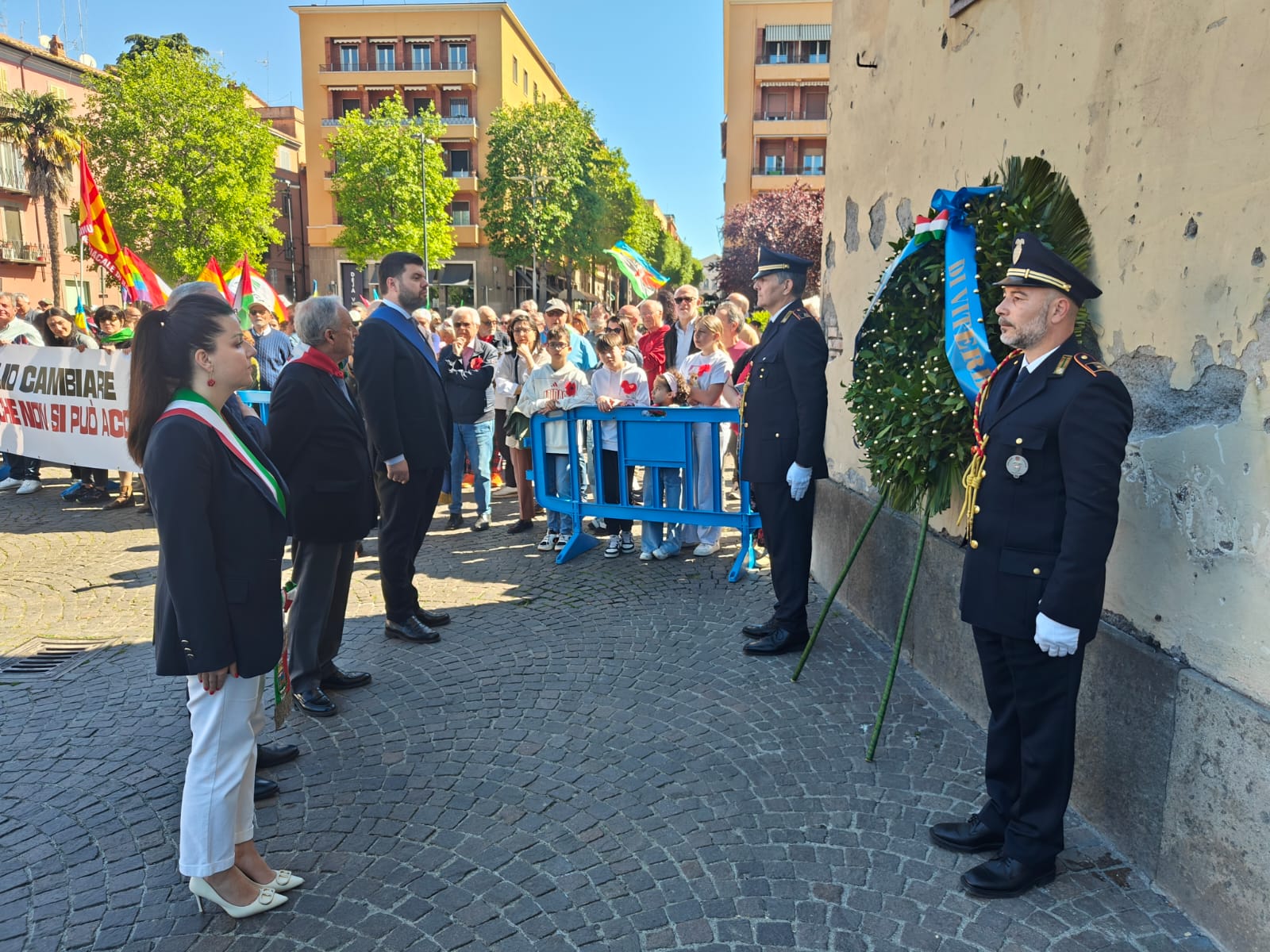 A seguire è intervenuta la sindaca Chiara Frontini, che ha ripercorso il significato profondo e storico della Liberazione, descrivendola come il momento esatto in cui l’Italia ha ritrovato il battito del proprio cuore libero, trasformando il silenzio imposto dall’oppressione in una vibrante partecipazione democratica. La prima cittadina ha ricordato il valore di una comunità nazionale che cessa di essere spettatrice per farsi protagonista del proprio destino. Un passaggio fondamentale del suo discorso è stato rivolto al ruolo cruciale delle donne: a loro, che in quel frangente storico esercitavano per la prima volta il pieno diritto di cittadinanza, va il merito storico di aver compiuto il miracolo silenzioso di ricostruire il tessuto umano, le relazioni e la società civile muovendosi tra le macerie del dopoguerra.