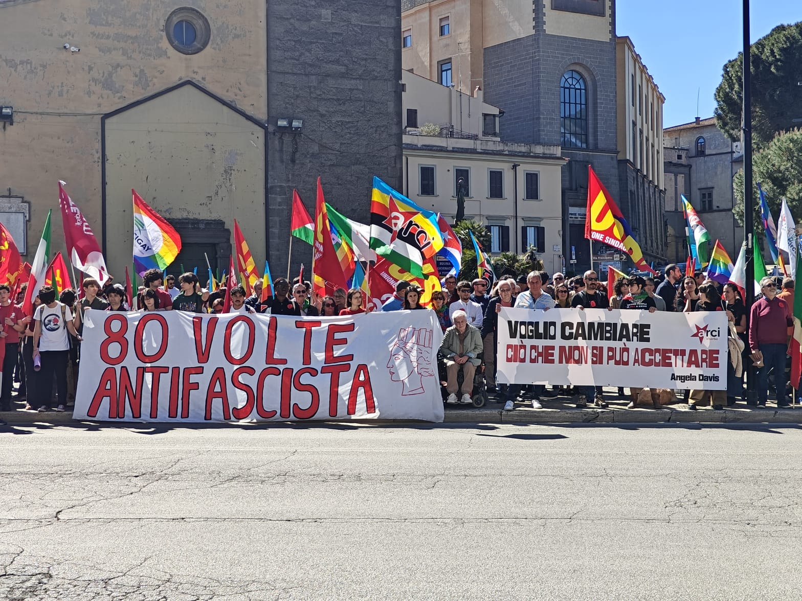 Terzo e ultimo a intervenire è stato Enrico Mezzetti, Presidente della sezione ANPI di Viterbo, che ha tenuto un discorso lungo e accorato. Mezzetti ha scelto di incentrare la sua riflessione sull’articolo 3 della Costituzione italiana, definendo la nostra Carta “la più bella del mondo, ma anche la meno omaggiata e utilizzata fino in fondo”. Il Presidente dell’ANPI ha poi tracciato una chiara rotta per il domani, sottolineando con forza l’importanza dell’accoglienza come pilastro fondamentale su cui l’Italia dovrebbe fondare il proprio futuro. Un discorso conclusosi con un appello inequivocabile: l’importanza vitale, oggi come ieri, di non smettere mai di essere orgogliosamente antifascisti.