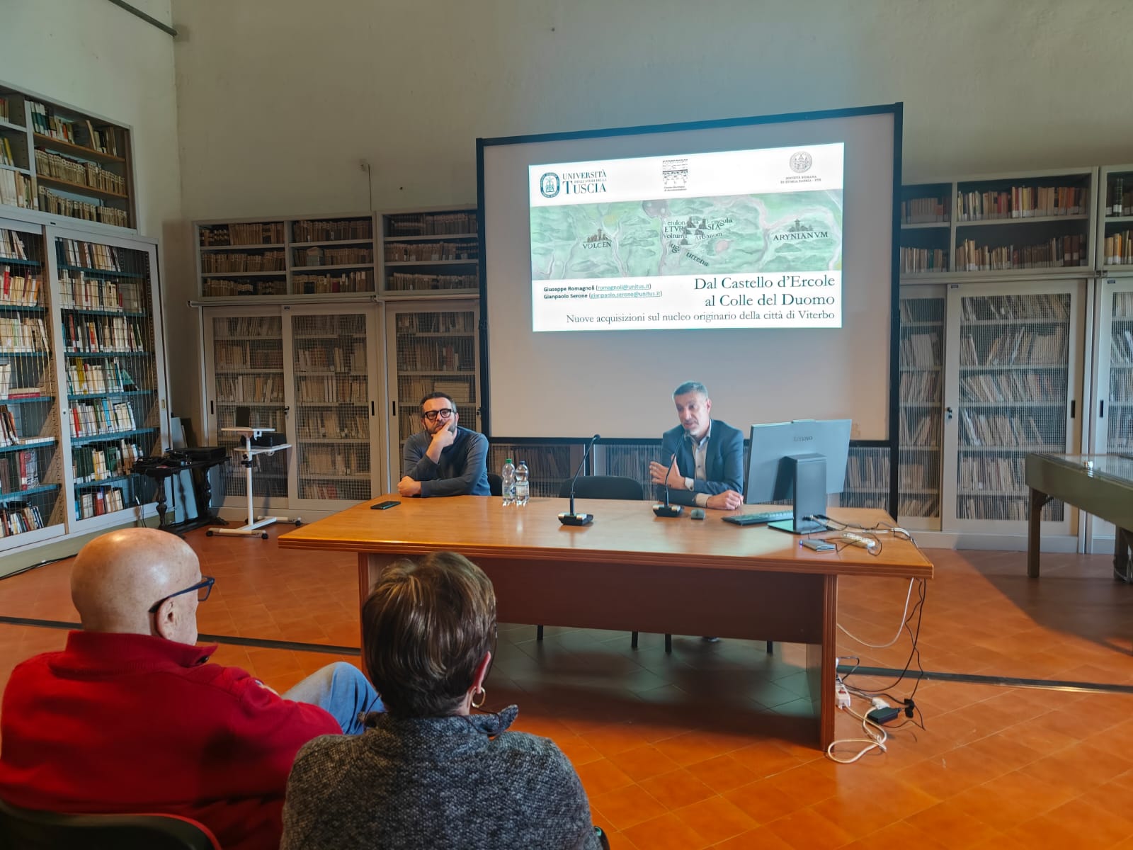 VITERBO – Esiste la Viterbo delle leggende, quella nata dalla clava di Ercole e celebrata dalle geniali intuizioni rinascimentali, ed esiste la Viterbo storica, sepolta sotto i prati del Colle del Duomo, non meno epica e affascinante. Un confine sottile tra mito e archeologia che è stato esplorato mercoledì al Cedido, durante il partecipato incontro del ciclo Itinera 2. A svelare le ultime scoperte di questo ambizioso progetto di ricerca – promosso dalla Diocesi di Viterbo e portato avanti dall’Università della Tuscia in stretta collaborazione con la società Archeoares – sono stati Giuseppe Romagnoli, docente di Archeologia Medievale presso l’Unitus, e l’archeologo e dottorando Gianpaolo Serone.