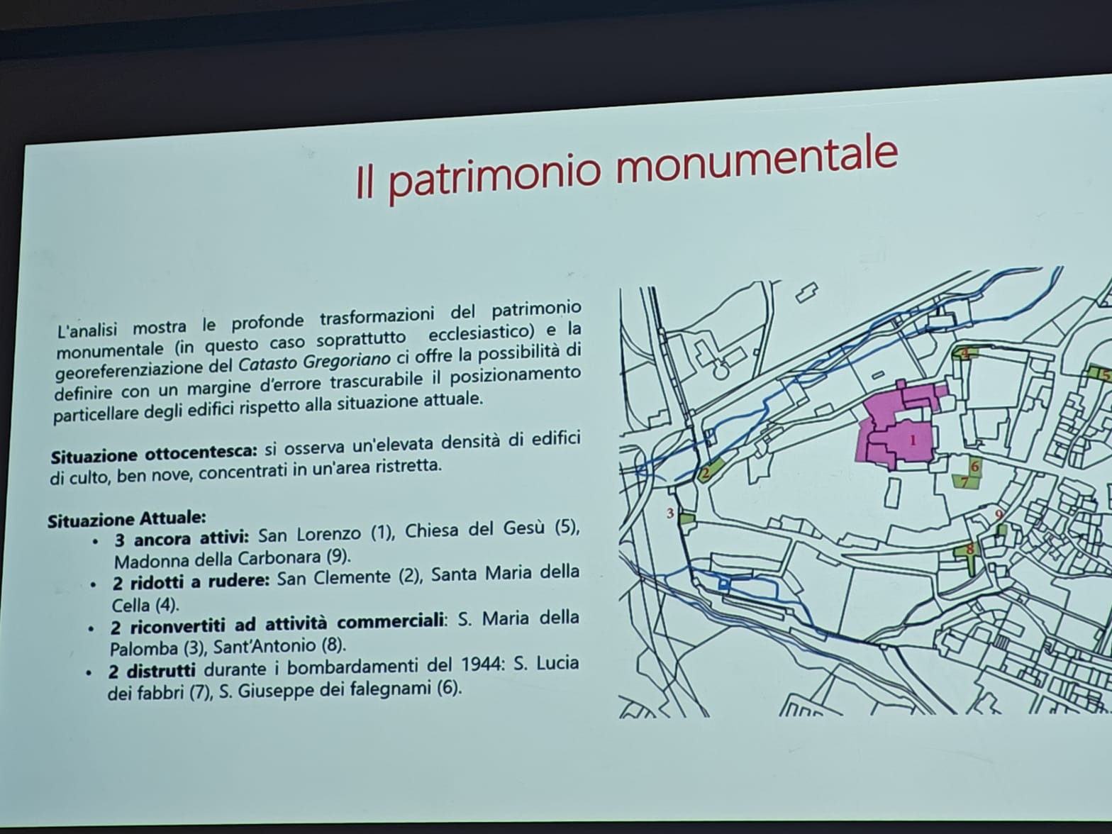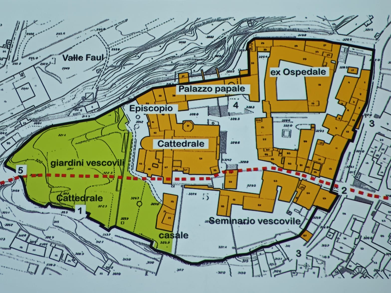 Con l’elevazione a sede episcopale, il paesaggio del colle mutò ancora: la Cattedrale e il Palazzo dei Papi si espansero fagocitando le strutture precedenti, tra cui l’antico ospedale di San Lorenzo. Lo stesso campanile del Duomo, leggermente disallineato rispetto alla facciata, tradisce un passato diverso: secondo gli studiosi si tratterebbe infatti di un’antica torre militare di guardia riadattata. Per decodificare questa topografia scomparsa, l’archeologo Serone ha utilizzato una vera “macchina del tempo”: il Catasto Gregoriano del 1835. Sovrapponendo al centimetro le antiche mappe pontificie a quelle odierne, è emersa un’insospettabile Viterbo ottocentesca, fatta di estese coltivazioni di vitigni nel cuore del Colle, pascoli urbani e un’altissima densità di chiese. In un’area ristrettissima se ne contavano ben nove, decimate nel tempo dai bombardamenti alleati del 1944 (come S. Lucia e S. Giuseppe) e dall’urbanizzazione successiva.