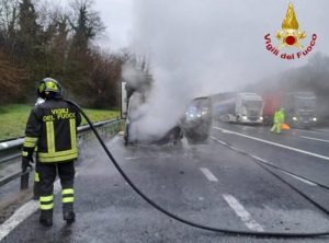 Anagni – Furgone in fiamme sull’A1, conducente illeso