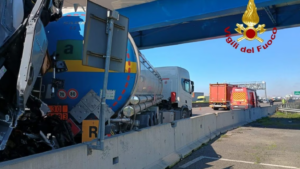 CASSINO - Momenti di paura sull’A1, in direzione sud, nel tratto tra Cassino e San Vittore del Lazio, teatro di un violento impatto tra due mezzi pe.....