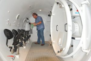 Chiamato ad intervenire un mezzo dell'Ares 118, Pegaso 33, partito da Viterbo per trasportare l'uomo dall'isola alla camera iperbarica dell'ospedale d...