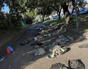 Viterbo – Parco via Cattaneo nel degrado tra pali abbattuti, altri giochi distrutti e “i soliti ubriachi molesti” (FOTO)