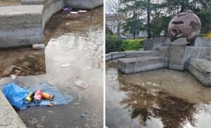 Viterbo – Murialdo, Fontana a sfera subito spenta dopo l’inaugurazione: tornano degrado e sporcizia (FOTO)